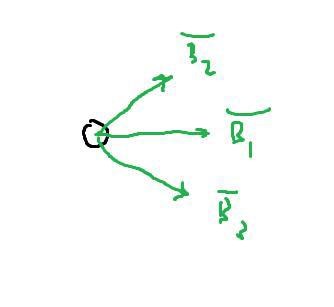 B1 fås från ledaren högst upp, B2 från ledaren längst ner till vänster och B3 från ledaren längst ner till höger. Eftersom vi arbetar med kraft per längdenhet, det vill säga F/L = BI så kan vi dividera med I på båda sidor och få B som för alla ledare då blir 2.0 * 10 ^- 7 T. Av diagrammet ovan finner jag att vinkeln mellan B1 och B3 är 60 grader, och av symmetri bör densamma gälla för vinkeln mellan B1 och B2. Vi bryr oss enbart om de komposanter av kraften som är vinkelrät mot strömmens riktning, således får jag att den totala styrkan av magnetfältet blir: