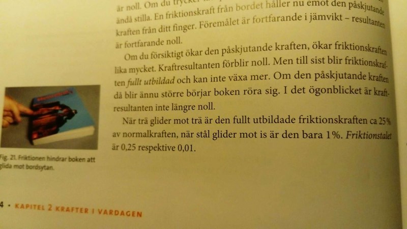 Facit ger svaret 200N medan jag trodde det var som när trä glider mot trä (25% av normalkraften).