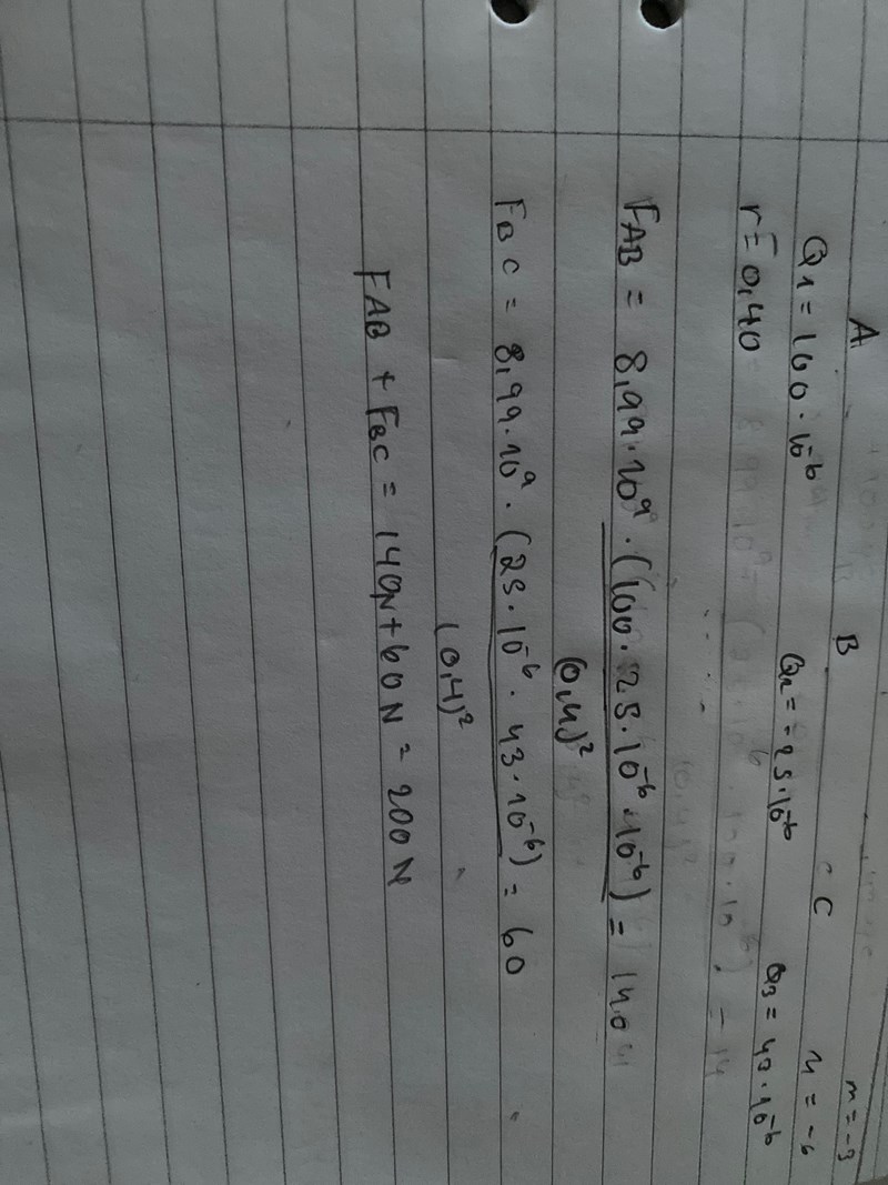 hur ska jag gå vidare nu? förstår inte riktigt för jag räkna ju två krafter, det är väll de som är Fres, eller finns de en tredje kraft? Vad är Q1 och Q2 då för den...
