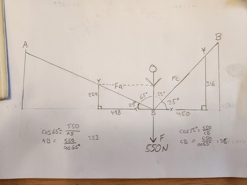 Dela nu upp FA och FC i x-och y-komposanter med hjälp av de angivna vinklarna.