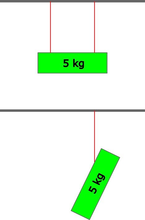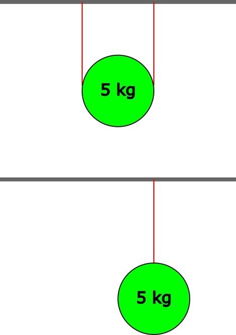 Blir spännkraften i den ensamma röda linan i den undre figuren verkligen lika stor?