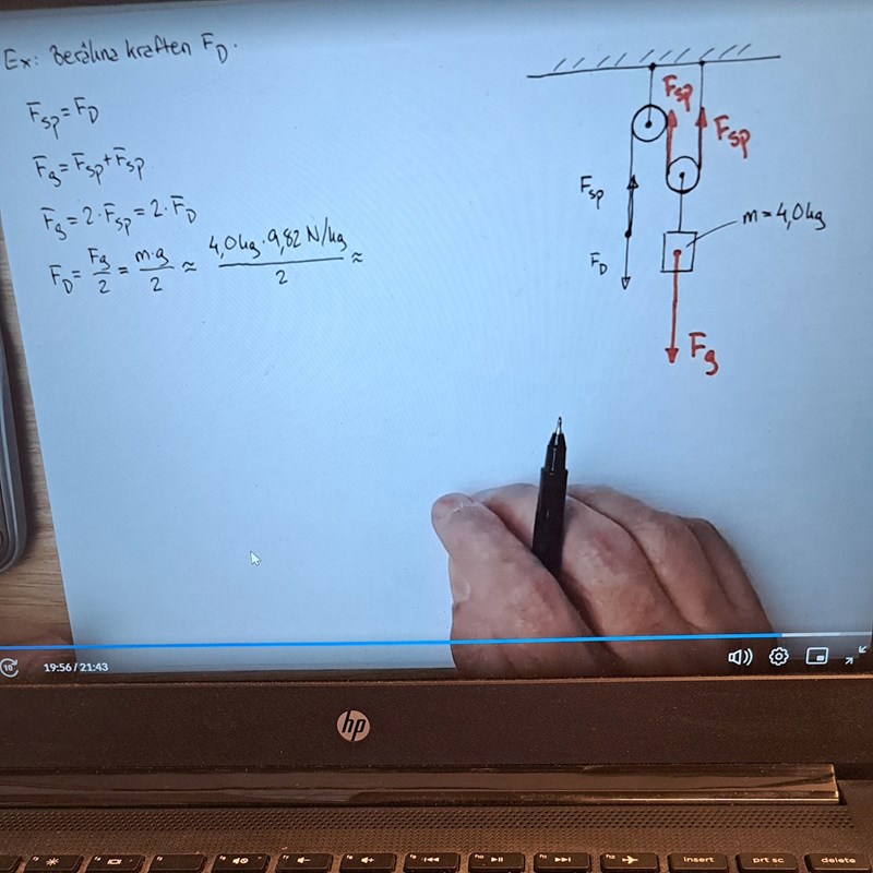Ah okej. Jag är fortfarande ej med på varför man ritar två st kraftspänningar i båda snören hos ena trissa tillsammans med andra trissan? Vad händer om man nöjer sig med bara en Fsp som han ritat i motsatt riktning till Fd eftersom Fsp i snöret är lika stor överallt ?