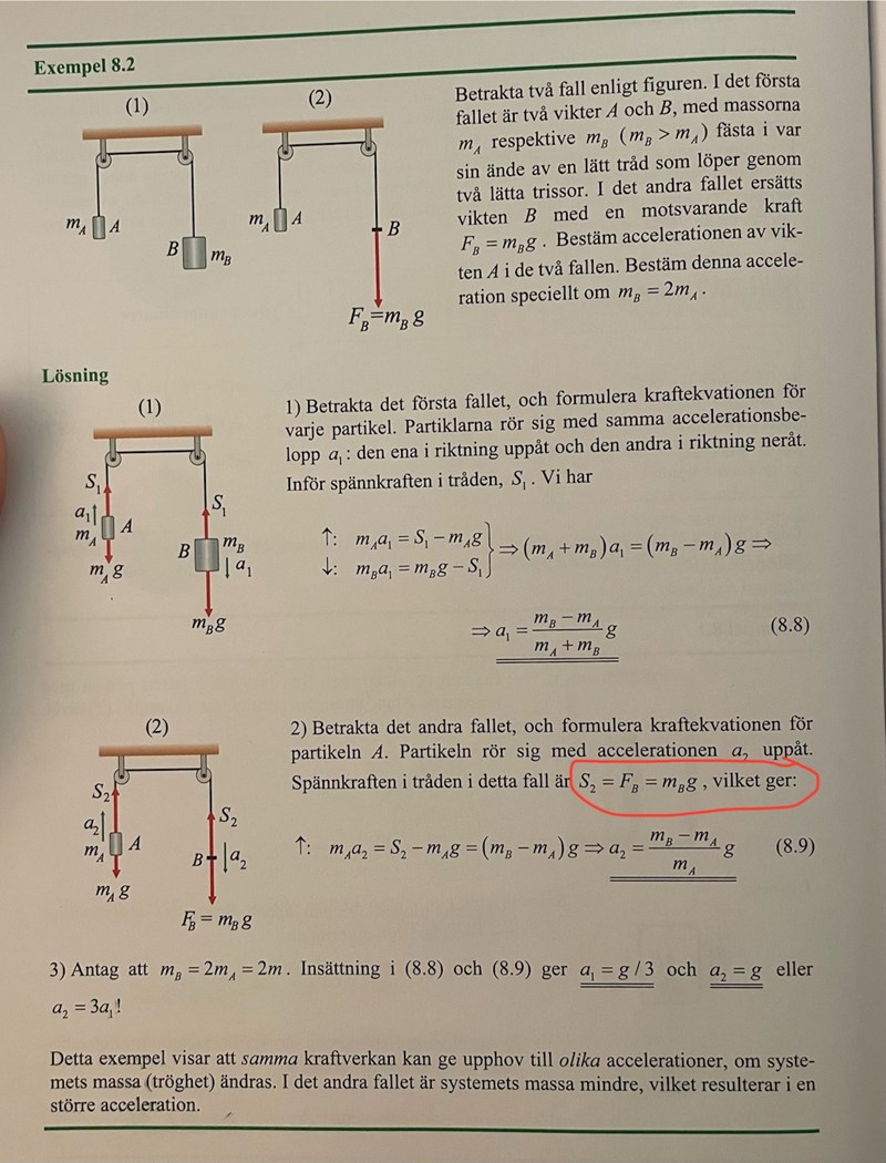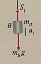 så får du uttrycket F=mBg-S1=mBa1, precis som lösningsförslaget. Detta är du med på, eller hur?