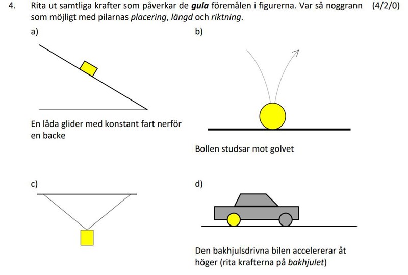 Uppgiften går ut på att rita ut krafterna på de gula föremålen