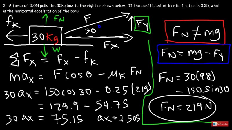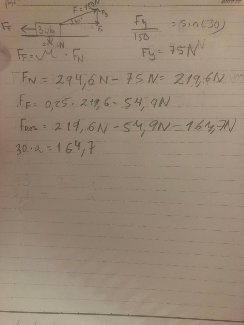 Fres = Fx - 0,25FN = Fcos30˚- 0,25FN.