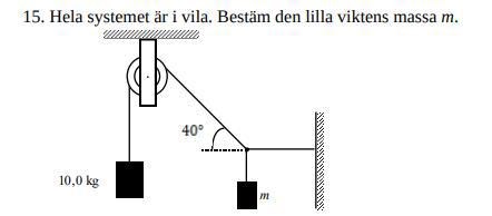Komposantuppdela snörkraften vid den lilla massan. Lodräta komposanten = tyngdkraften från lilla massan