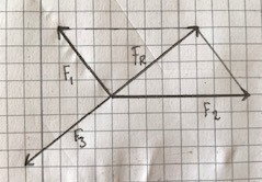 Sen ritade jag in kraften F3, som ska vara lika stor som den resulterande kraften, men motriktad.