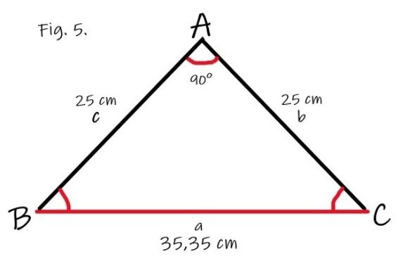 Hypotenusan av triangeln som taveltråd skapade beräknades med pythagoras sats: