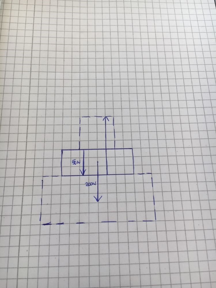 Den mellersta lådan trycker på den understa med sin egen tyngd 200N plus tyngden från den översta lådan. Dessa två pilar har du ritat ut.