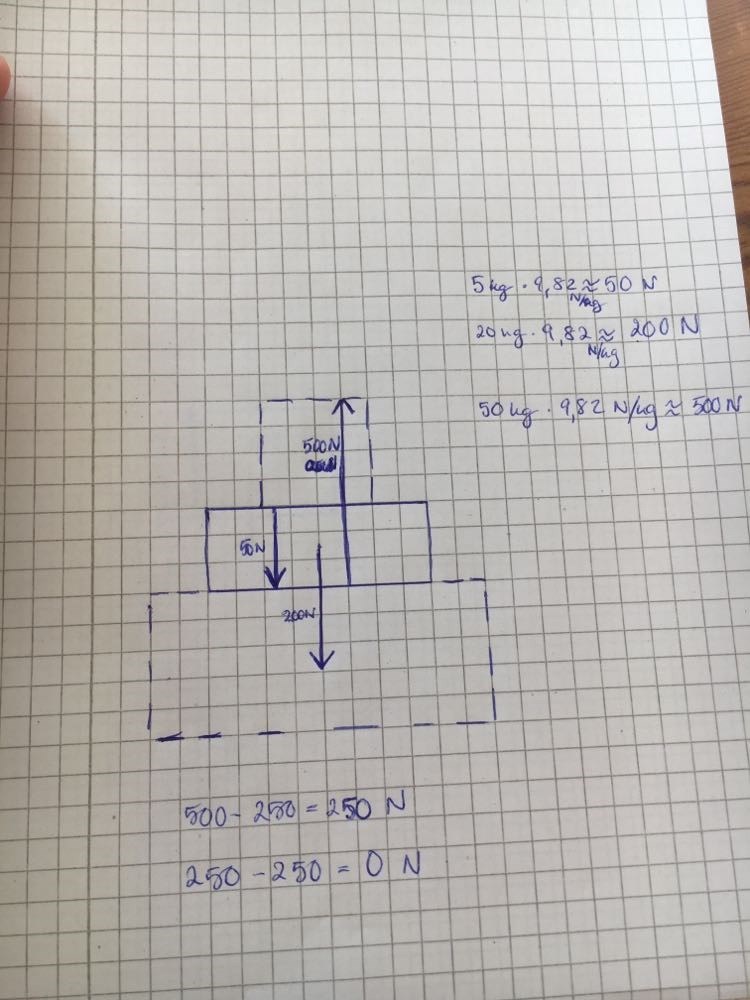 Är det så att kraften är 500 N men de krafter som riktar åt andra hållet är 250 N, så då blir kraften 500 N-250N= 250N