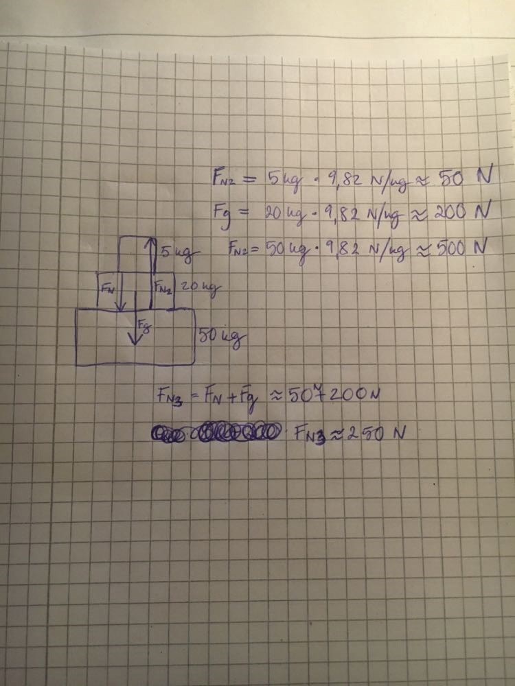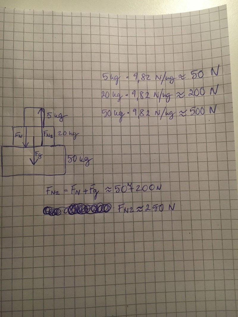 Normalkraften är då 250 N? Men då behöver jag inte ha med 50*9,82?