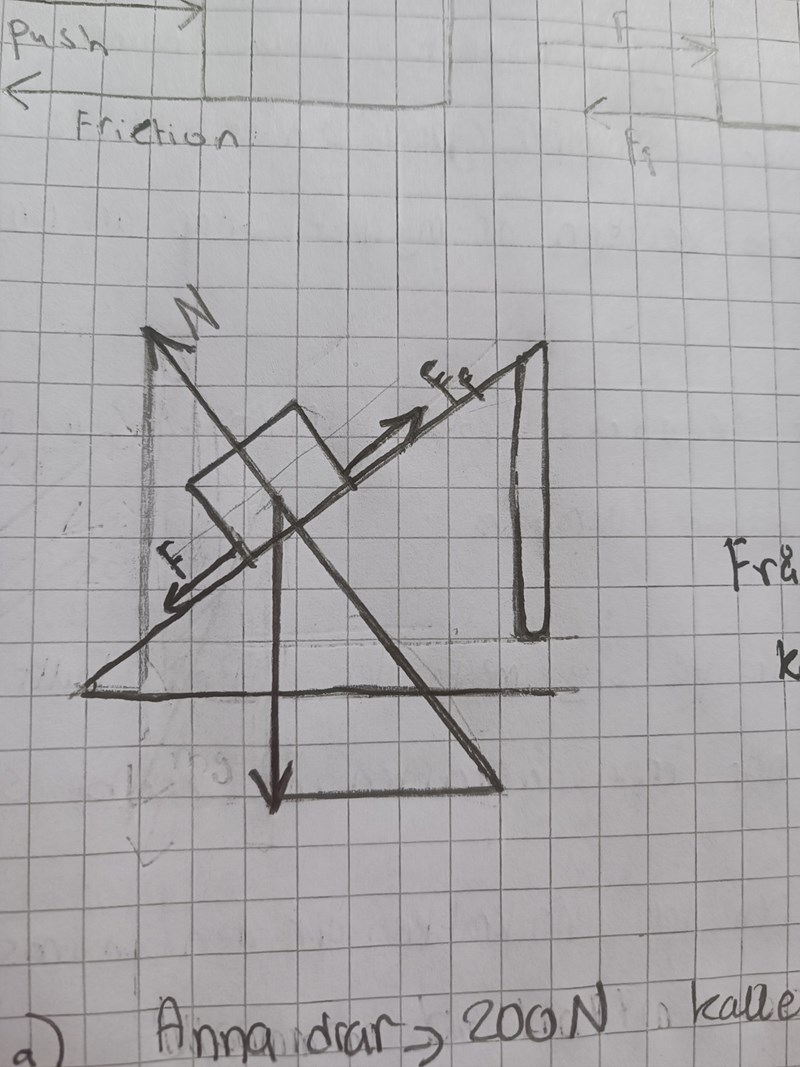 jag rita det igen. Det är jag som har ritat bilden. Mg är tyngdkraften. Är det rätt som jag har gjort nu?