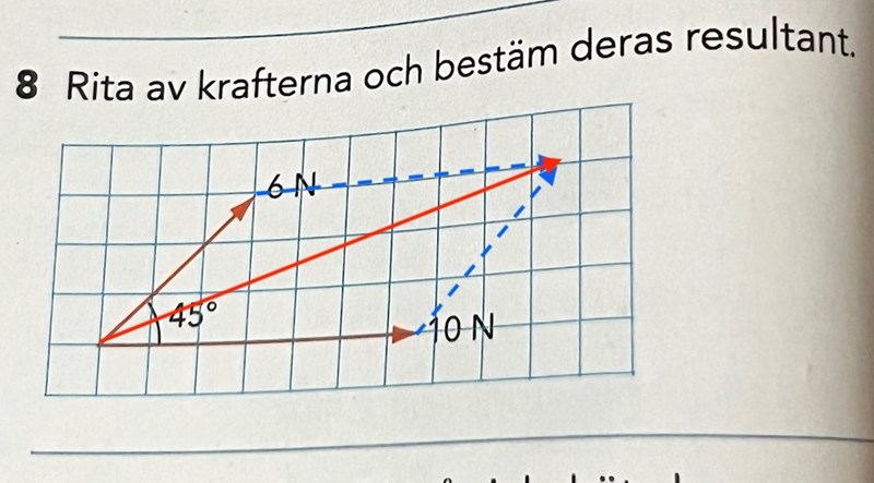 Pieter Kuiper skrev:Kurdistan011 skrev:Pieter Kuiper skrev:När man ritar noga, kan man mäta att resultantens längd är cirka 50 % större än 10-newton-pilen.