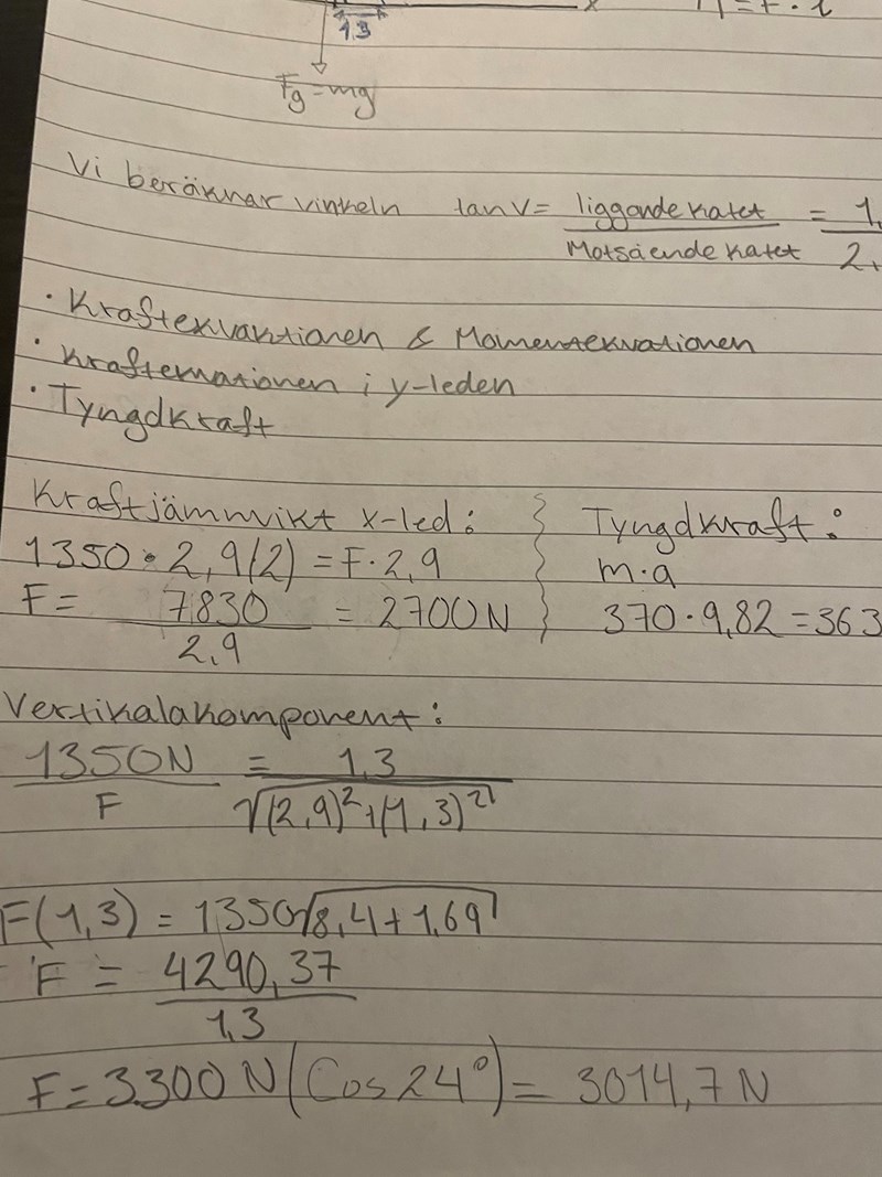 formel för kraftjämvikt i y-led kan uttryckas på följande formel, varav vi vill endast ha Fn
