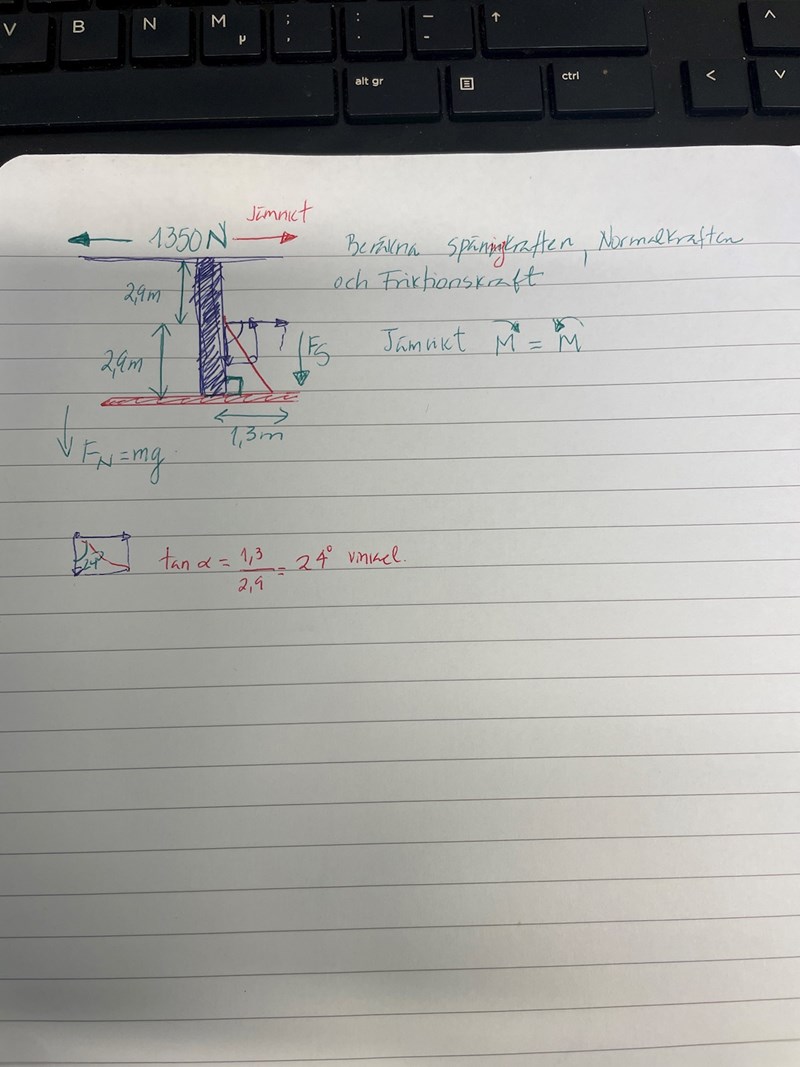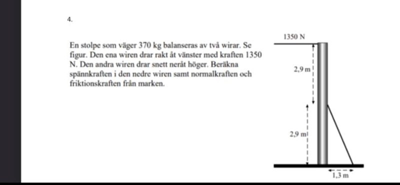 normalkraften borde vara lika stor som nedre wirens y komposant plus stolpes tyngdkraft