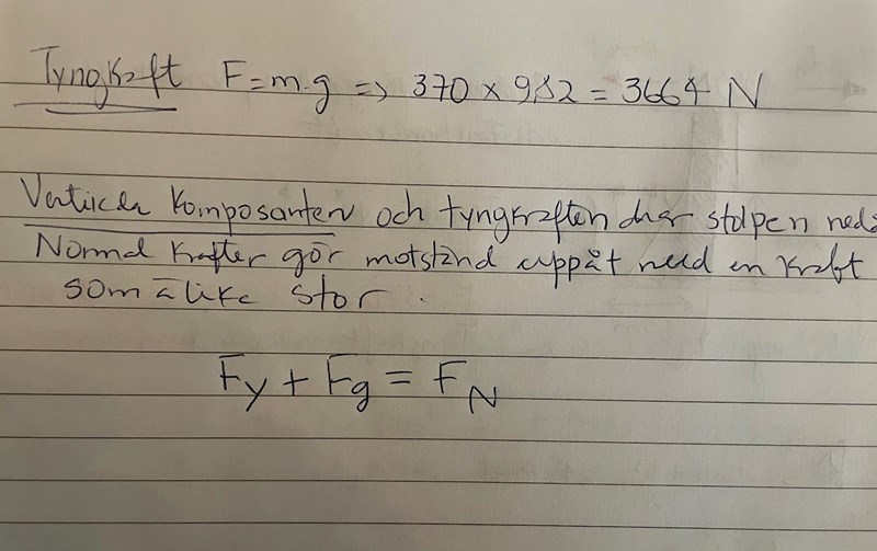 Jag menar att Normalkraften är lika med tyngdkraften + sneda wiren kraft vertikalkraften