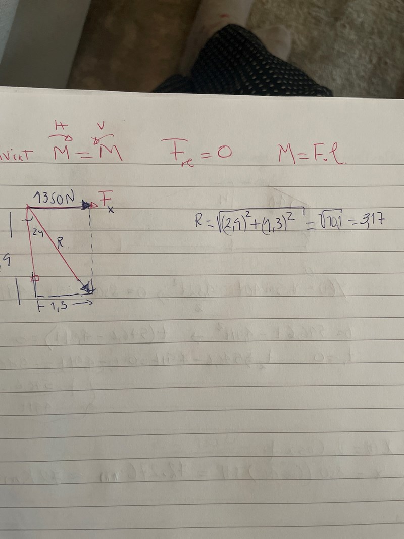 i denna uppgift krävs det två saker som har redan nämnts, första är att summan av alla vridmoment är noll. likadant för summan av alla krafter på stången. då behöver vi jobba med två ekvationer varav vridmomentet kommer generellt vara enklare av de två