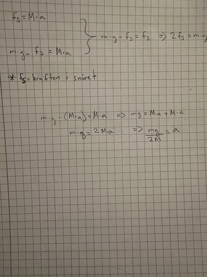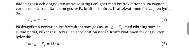 Tolkar jag det rätt att man ska kombinera dessa två ekvationer för att försöka få fram en formel för accelerationen.