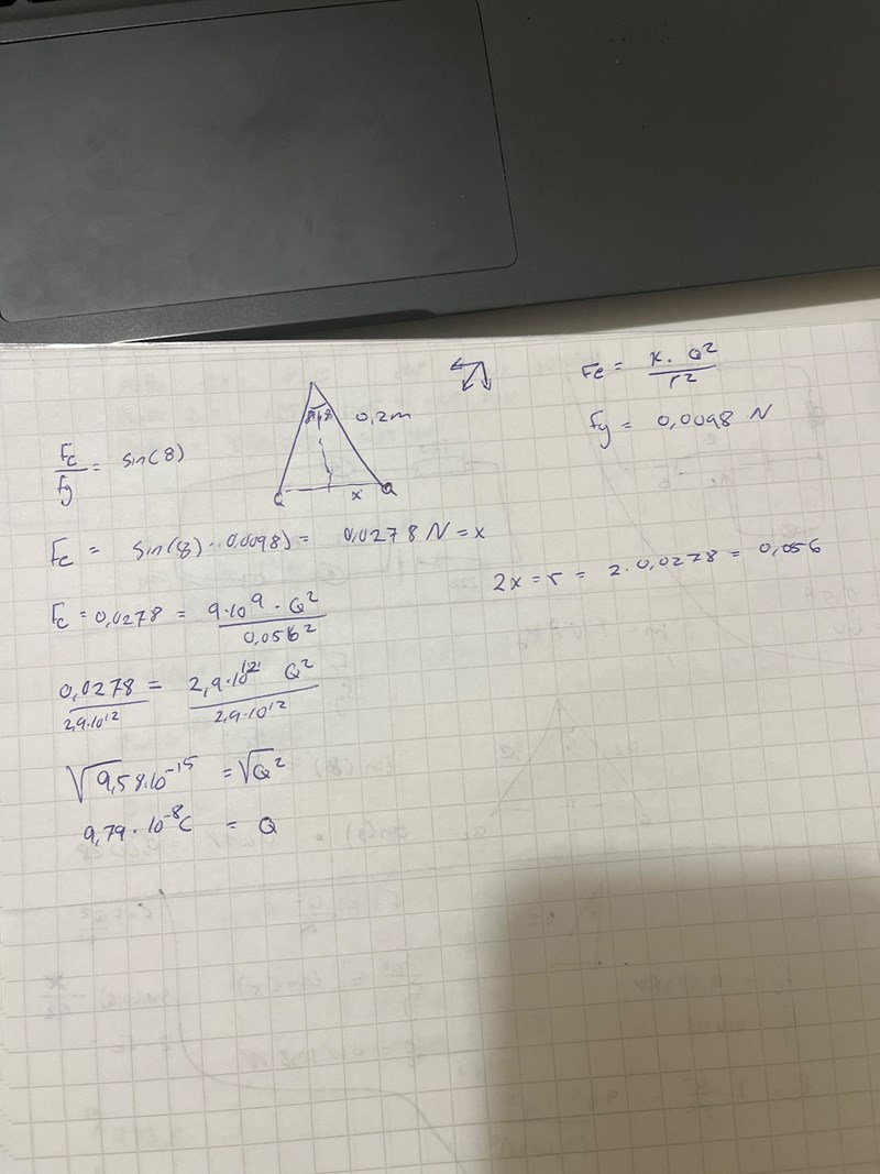 Jag ska räkna ut x och därför tog jag sin(8)*Fg=sin(8)*0.0098=0.00136N, nu såg jag felet.