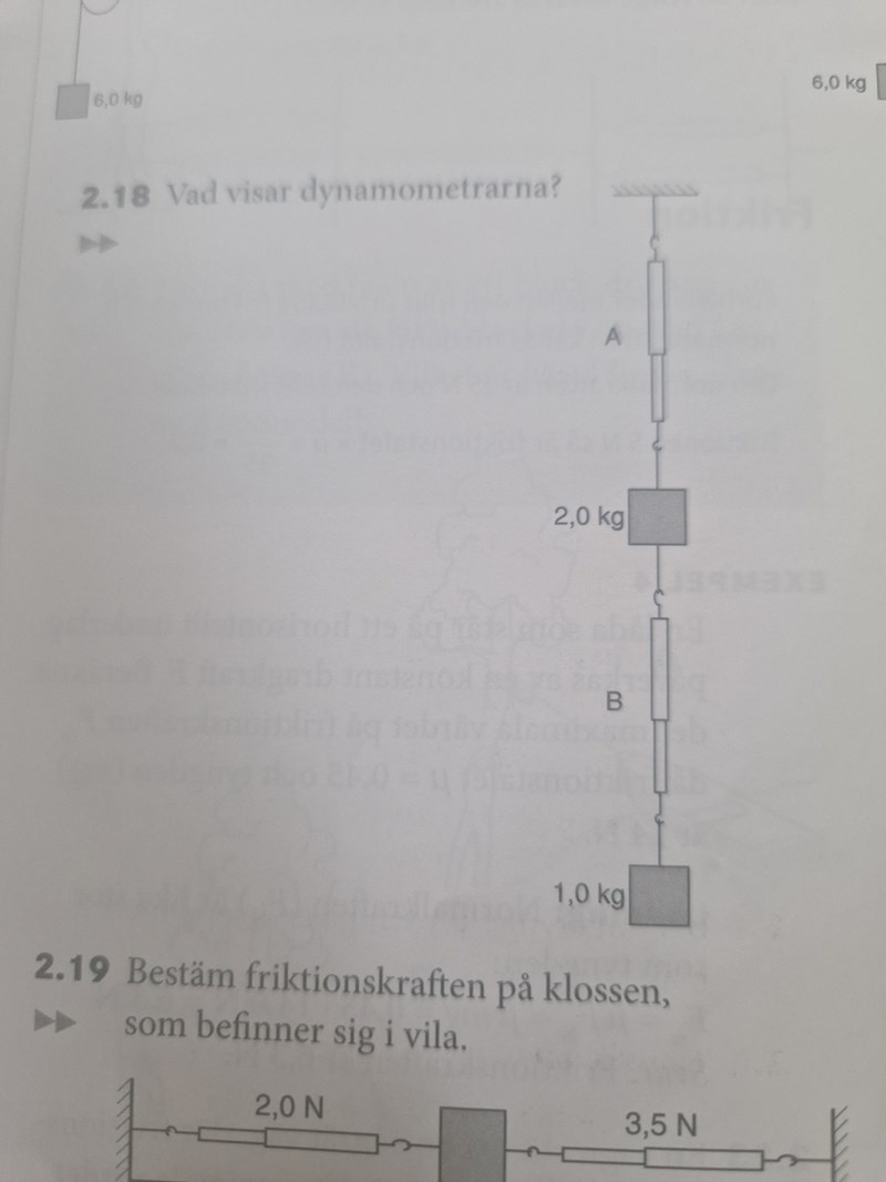 Försök hitta vilka krafter som verkar på de två dynamometrarna. Du kan anta att dynamometern inte har någon vikt.
