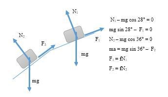 Accelererande kraften = mg(sin36 - tan28 * cos36)