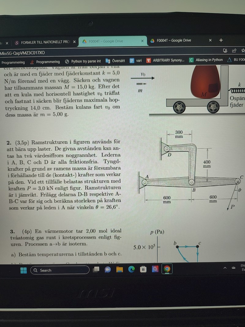 Hej! Jag försöker lösa fråga 2 på denna gamla tenta men förstår inte varför de k facit tar -P*cos(X)*0,6 + Ay*0,6 = 0 när de beräknar moment kring B. Är inte py och Ay riktade åt samma håll, så om Py är negativ borde Ay vara negativ?