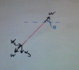Eftersom kraften från kärlet verkar i y-riktningen komposantuppdelar jag W i Wx och Wy