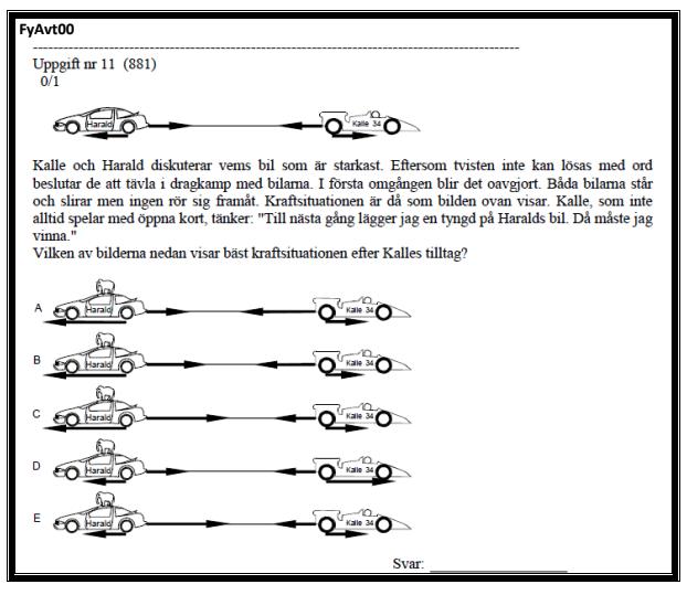 I C så är kraftresultanten noll på varje bil, så ingen acceleration hos bilarna. Men då kan inte spännkraften vara olika i olika ändar av repet, för då skulle repet accelerera. Så detta är en ”omöjlig” situation.