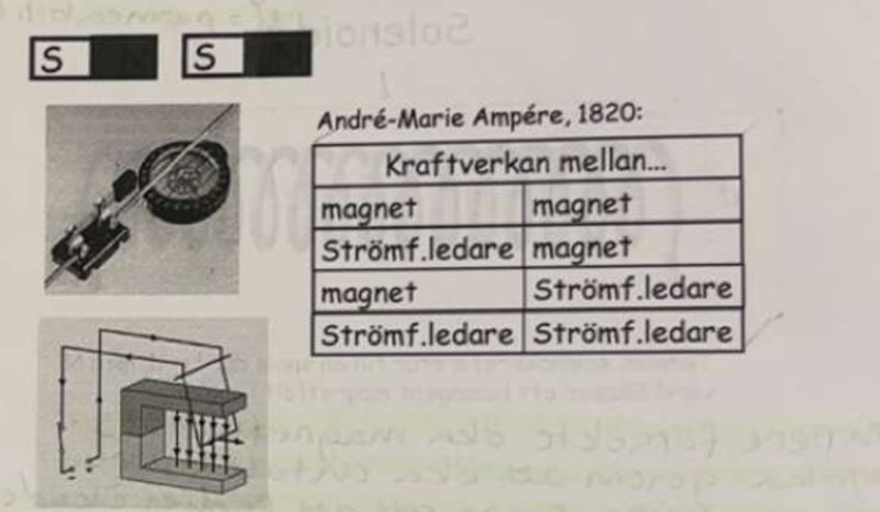 Jag tror man ska tänka att i fallet med kompassen är det strömmen i ledaren som orsakar en förflyttning av kompassnålen. Så orsak-verkan blir: strömförande ledare - magnet. Och det motsatta i fallet med hästskomagneten.