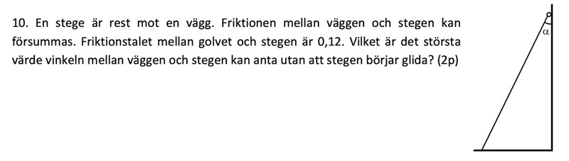 Ställ i stället upp en momentekvation, tex kring stegens kontaktpunkt med marken.