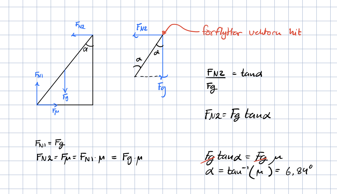 PATENTERAMERA skrev:Hur kom du fram till att FN2/Fg = tan? Du har ritat det som om detta skulle stämma, men det är inget som säger att du har ritat rätt, eller hur.