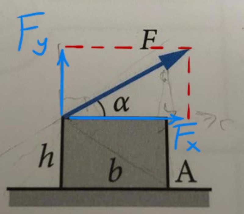 Krafter går ju att flytta längs sin verkningslinje, så ifall jag delar upp kraften med hänsyn på vinkeln alfa så får jag en kraft i vertikalled som inte ger något vrid? Eller?…