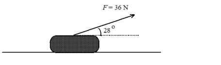Dragkraften F = 36 N bildar vinkeln 28o med horisontalplanet.
