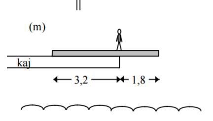 1. En flicka med massan 63 kg går sakta åt höger på en planka som sticker ut över en kajkant. Plankan har massan 38 kg. Hur långt ut på plankan kan hon gå innan plankan tippar?