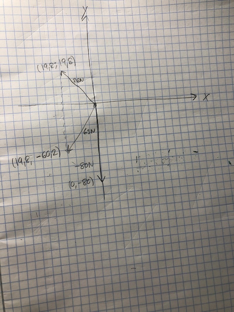 Tyngdkraften (som du kallar Fg) saknar x-komposant, vilket betyder att Fgx = 0 N och Fgy = -80 N.