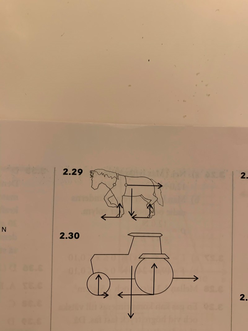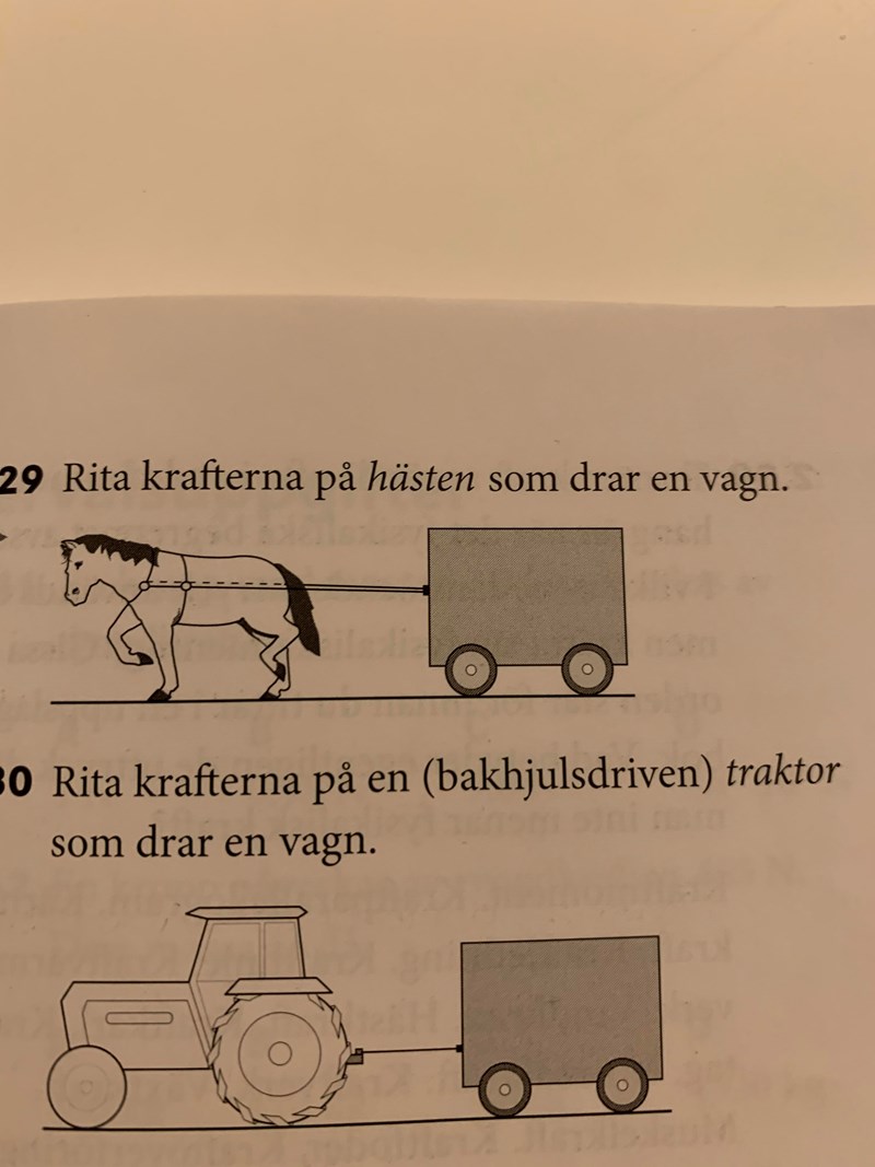Ok men till exempel dom här två uppgifterna som nämner ju inte hur stora krafterna är eller om det är konstant hastighet hur ska jag veta pilarnas längder ? Typ på hästen ser det ut att vara konstant hastighet som dom ritat och på traktorn också?