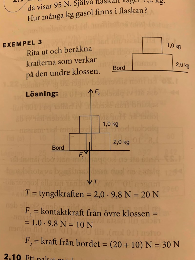 Det hade varit tydligare om lösningen benämt F1 som tyngdkraft för övre klossen istället för kontaktkraft.