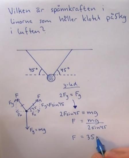 Varför kan man inte bara ta F=mg och dela det med 2 för att få ut linornas spännkraft?