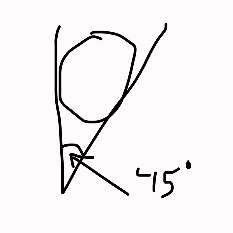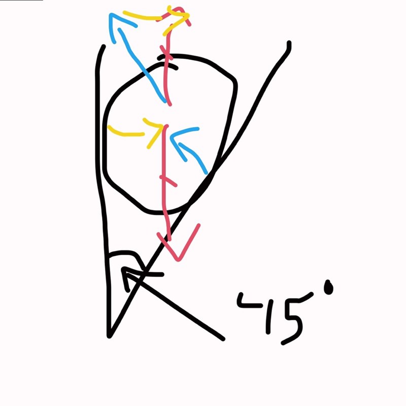 Ponera att vi har en boll (sfär) med massan m som ligger på en planka med 45° vinkel och stoppas av en vägg. Hjälp mig skriva ett uttryck för krafterna på bollen (normalkrafterna inkluderade). Här är min illustration: