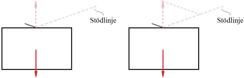 Stödlinjen är där för att enklare parallellförflytta vektorerna och kunna rita exakt hur långa snörkrafterna måste vara. Genom att använda stödlinjerna kan du med hjälp av ett rutat papper och en noggrann figur ta reda på värdet av snörkrafterna.