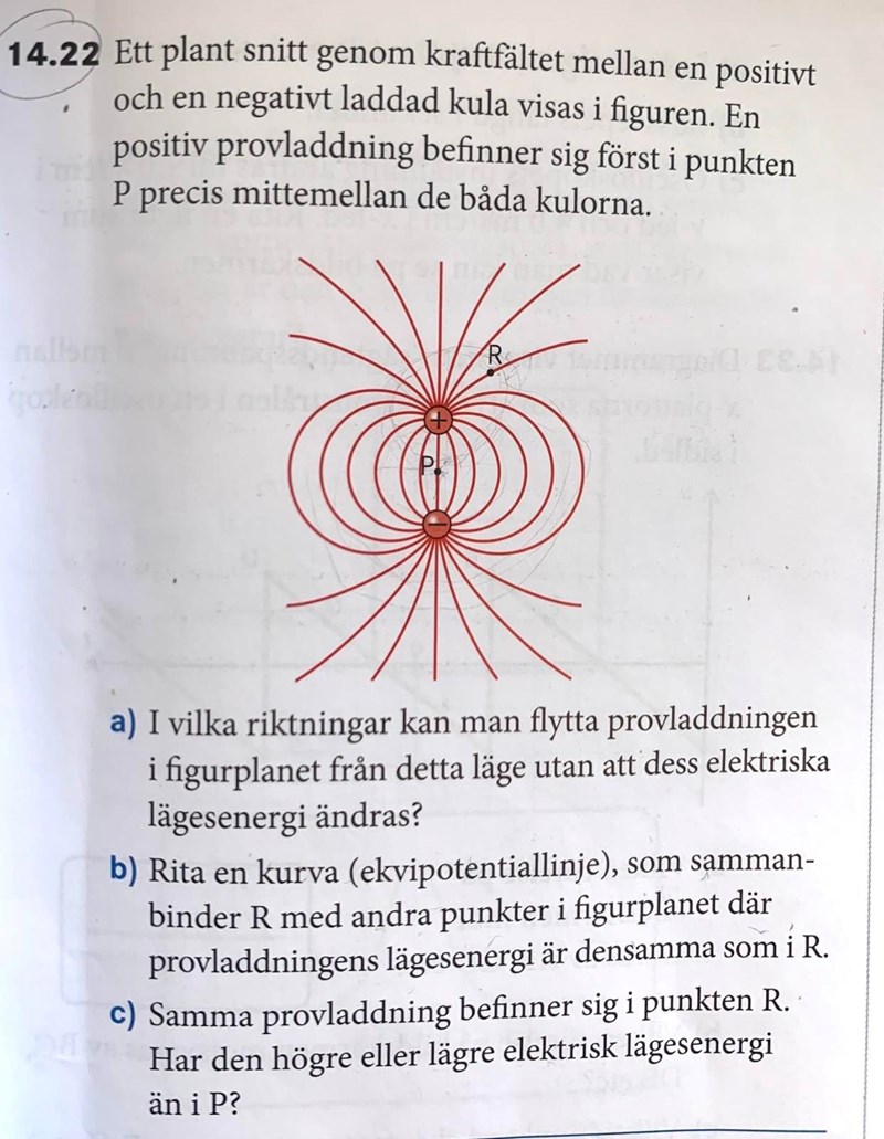 I uppgift a) är den elektriska lägesenergin densamma runt en cirkel kring R, skulle nån kunna förklara vad detta beror på?