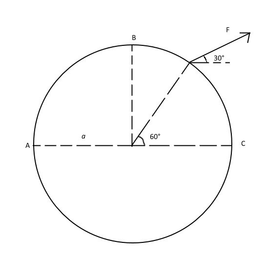 Frågan lyder: Kraften har beloppet F och verkar enligt figuren. Beräkna kraftens moment m a p A, B och C. H
