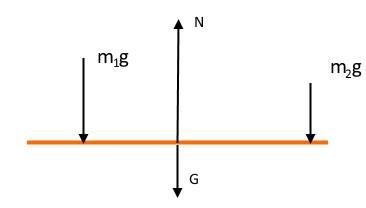 Plankan kommer vara utsatt för 4 krafter. Två barn (), en tyngdkraft och en kraft från axeln som håller upp plankan