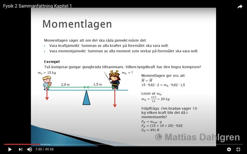 Hur kan FN bli 491 N ? jag fick 15+10+20*9,82= 441,9 så avrundar jag det till 442N Har han eller jag räknat fel? Sedan undrar jag hur kraften uppåt kommer se ut i denna situation kommer det vara 3 pilar uppåt en i mitten och varsin pil uppåt där ungarna sitter?