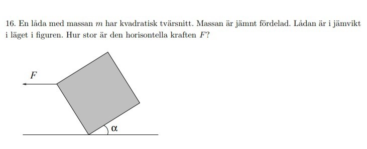 Det lättaste är nog att sätta upp momentjämvikt kring kring kontaktpunkten. Då slipper du tänka på vad friktionskraften skall vara. Du antar att friktionen är fullt utvecklad, men inget i uppgiften ger vid handen att så är fallet. Man skall undvika att göra egna antaganden,  om möjligt.