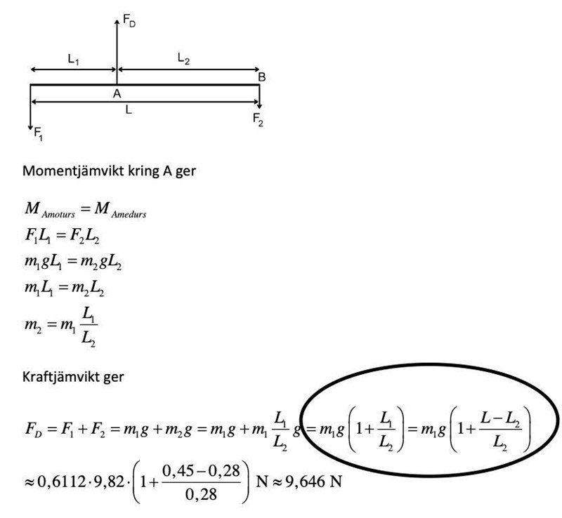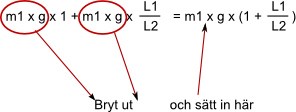 Det är: m1*g + m1*(L1/L2)*g som blir till m1*g*(1+L1/L2).