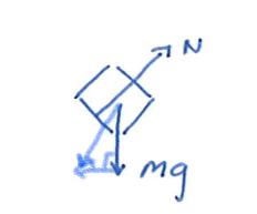 Jag vill dela upp mg i sina kraftkomposanter för att subtrahera med N. Bör det inte skrivas som N -(mg/sin(a))? mg är väl motstående i triangeln?