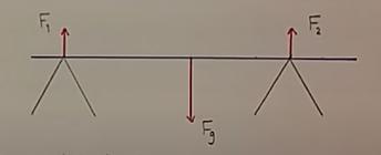 Antag att en jämn tjock balk ligger på två bockar. Verkande krafter på balken är tyngdkraften och normalkraften från bockar.