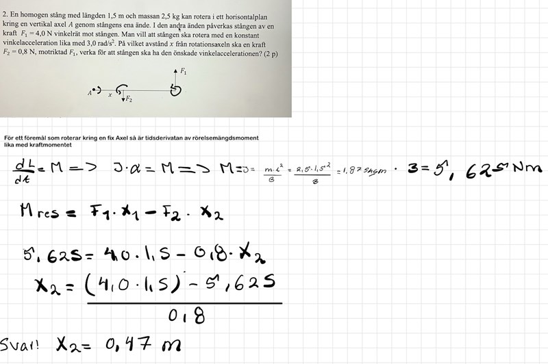 Hej jag har kommit till rätt svar, men jag undrar är kraftmomentet vid vridnings Axel alltid resultanten av de andra kraftmomenten som verkar på ett föremål?