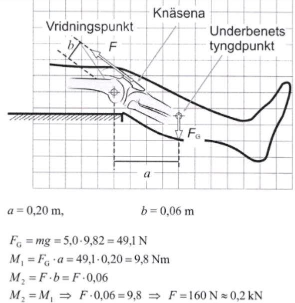 Figuren föreställer en person som sitter på en stol. Pilen FG visar tyngdkraftens riktning.